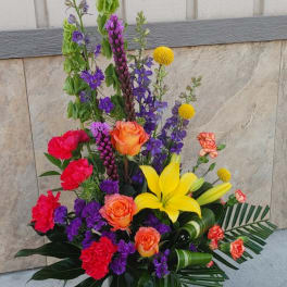 Sub Policy: Substitutions may need to be made due to the delicate nature of our medium. Exact shades of color can not always be guaraunteed, but we work hard to maintain color scheme, and when deviating slightly is necessary to maintain the look & value, we work with adding complimentary colors to your piece.If any element of the design is of special importance PLEASE note this in the delivery instructions on check out so that we can substitute according to your preferences rather than our own design aesthetics. If you have any questions please CALL in the order so we can properly accommodate you! :)